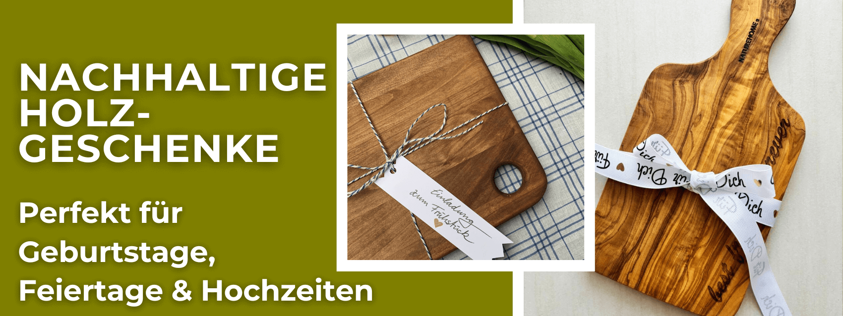Du suchst eine exklusive Geschenkidee, die sowohl emotional als auch ästhetisch überzeugt? Dann sind die handgefertigten Holzgeschenke von NATUREHOME genau das Richtige für dich. Ob stilvolles Schneidebrett, edle Schale oder praktisches Accessoire – jedes Produkt wird aus Holz gefertigt und mit großer Sorgfalt hergestellt.